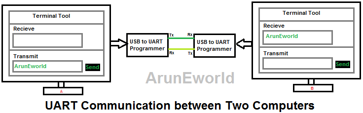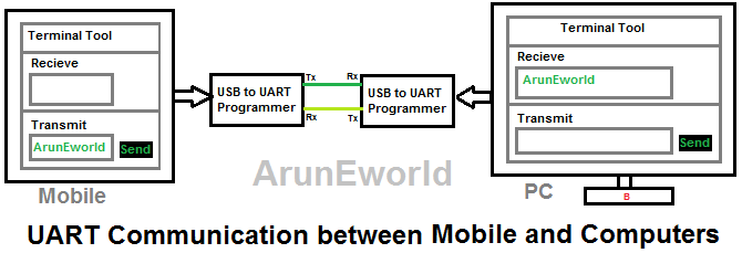 - UART Uses serial communication over a computer or peripheral device serial port. (Electronics Devices).